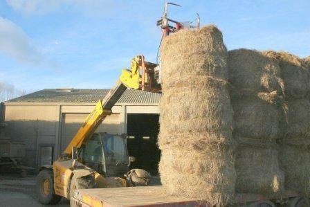 The flax in straw is coiled up in enormous balls of 250 kgs in order to be elated and stocked.